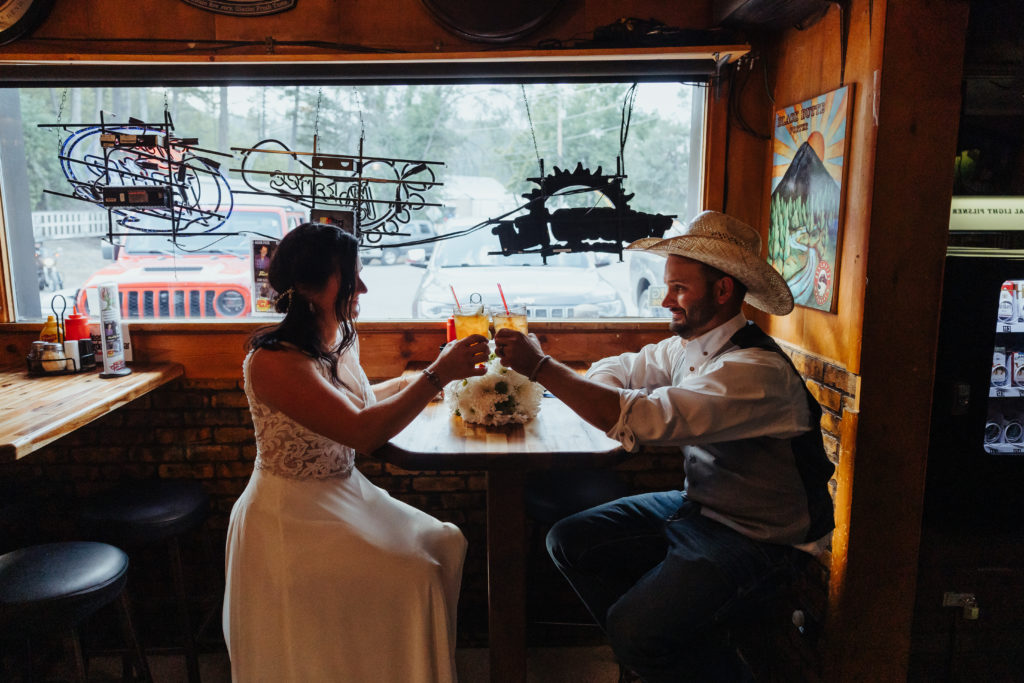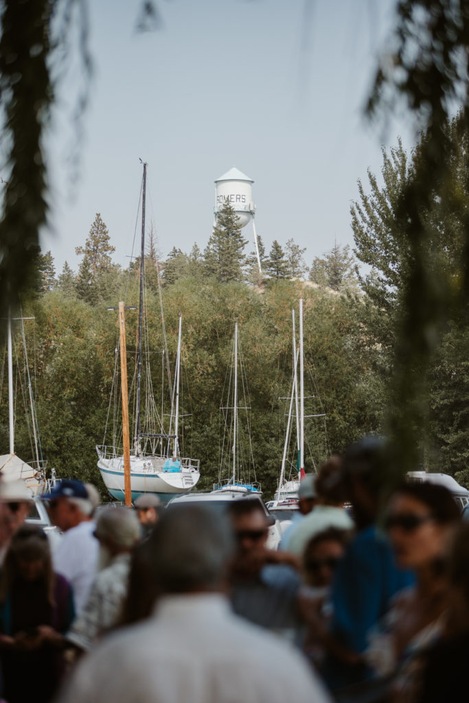 Ginjer and Matt's largely Do-it-Yourself style wedding—with help from the wonderful Amy Deering—was another wedding very much infused with the couples' personalities in every way. Ginjer is a longtime competitive sailor, Matt's a cowboy. Thus the theme "Boats & Boots" was born and everything extended from that. The ceremony itself was held at the North Flathead Yacht Club, followed by everyone adjourning to a friend's property just a short hop-skip-and-a-jump from the lake. But not without a stop at Del's along the way for the couple and me.