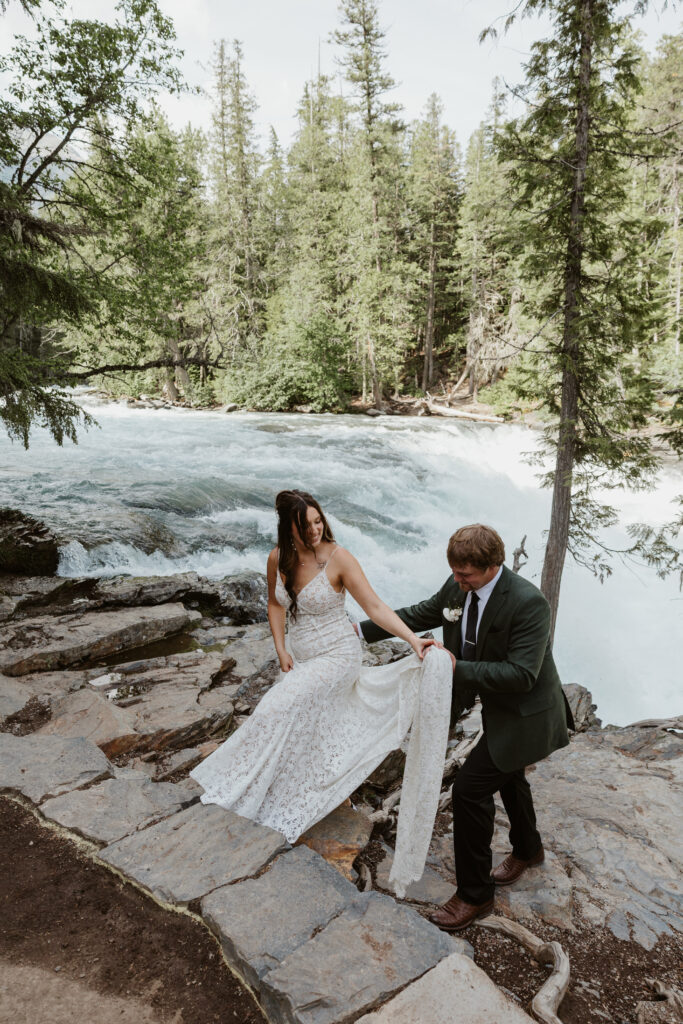From there we hopped into some cars and headed into Glacier National Park where they would be having their ceremony along the banks of Lake McDonald. After a brief ceremony, the families cleared out and we took the all-important couples photos there at seven-mile pullout, as well as along McDonald Creek and McDonald Falls, finally making our way to their dinner back in Whitefish at my favorite local restaurant Abruzzo Italian Kitchen.