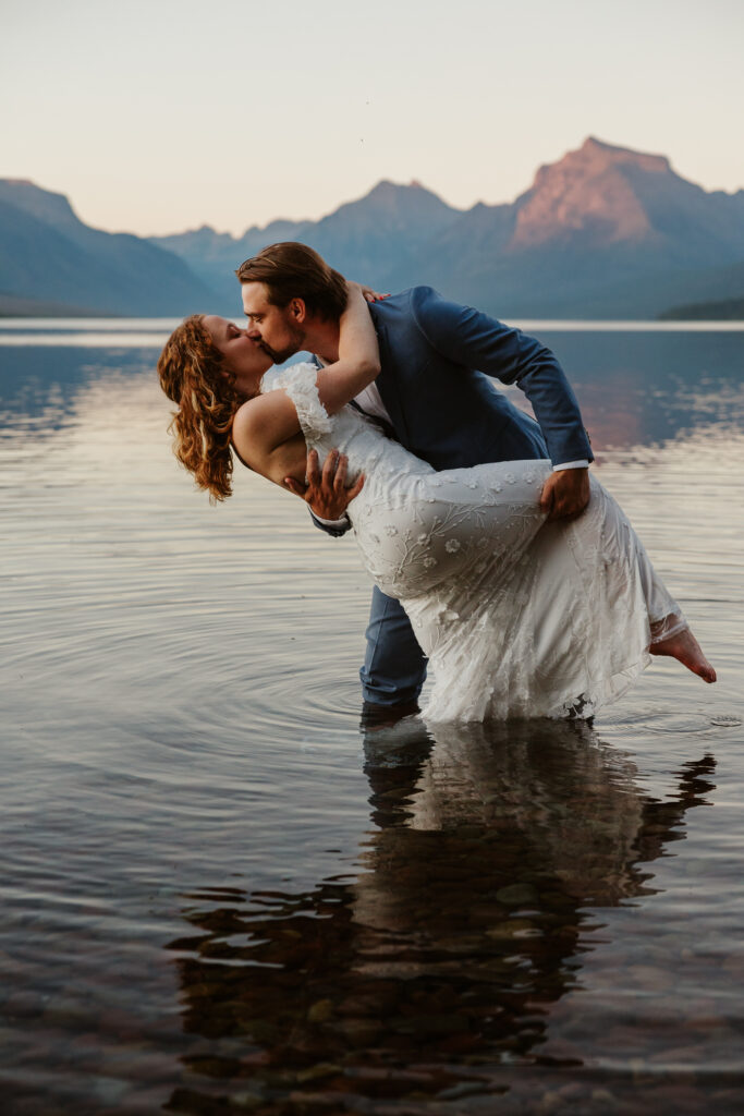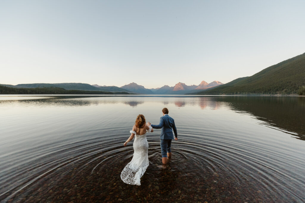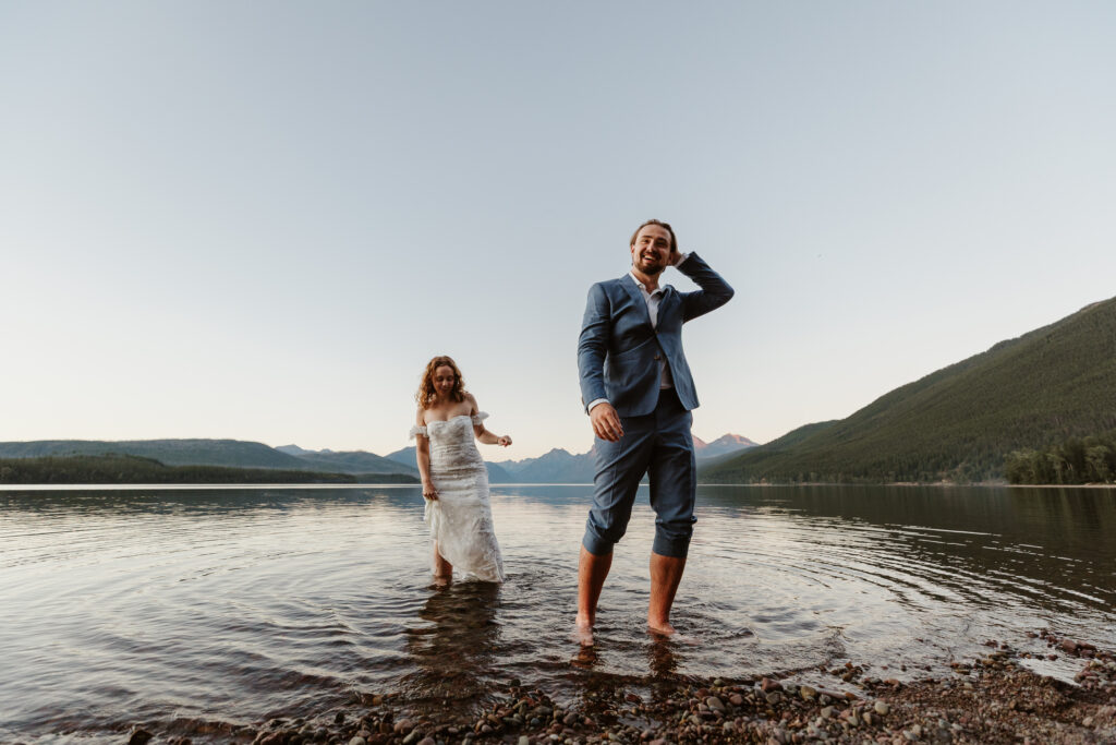 Katie had managed two get two wedding dresses she loved so that we didn't have to be overly careful with the dress while we were in Glacier, up to and including getting in the water at the end of the evening.